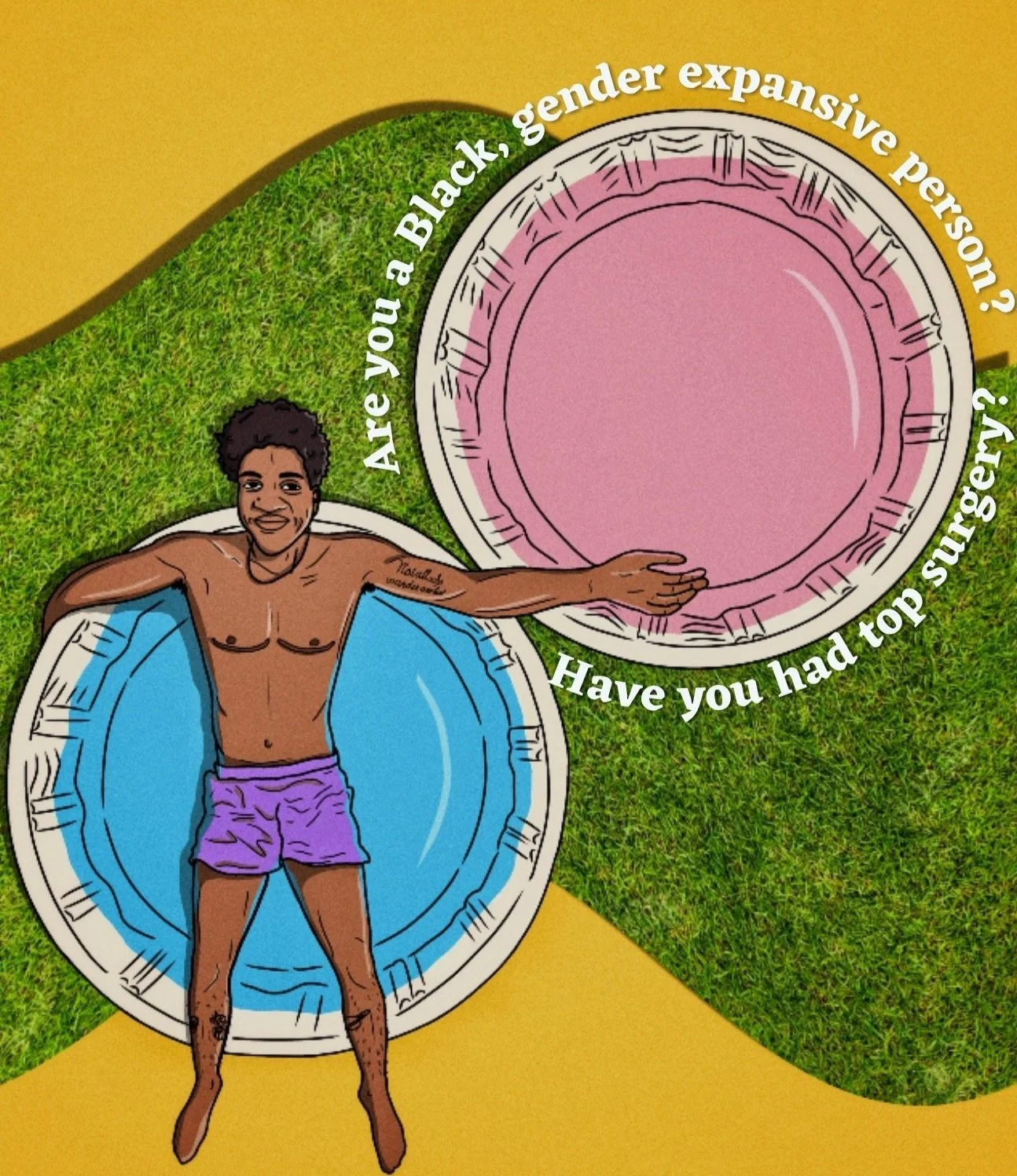 My artistic practice centers Black transgender and gender-nonconforming experiences, using storytelling as a tool for visibility, healing, and community-building. As an Artist in Residence at 2727 California Street (2022), I created Transcendence, an interview series amplifying the voices of Black TGNC people who have had top surgery.